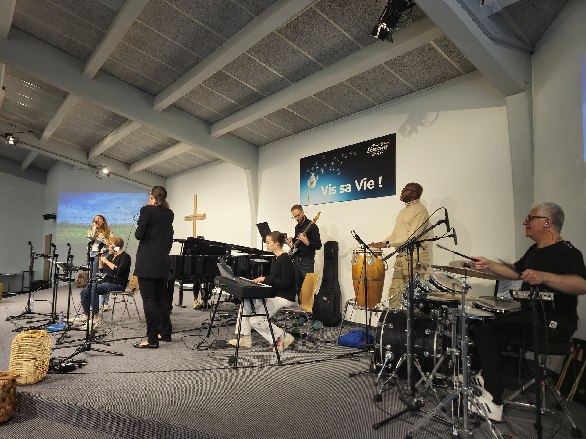 Autour du culte hebdomadaire, nombreux sont ceux qui donnent un coup de main pour prendre en charge les enfants, conduire les chants, décorer la scène, gérer les aspects techniques, préparer un apéro ou simplement accueillir les visiteurs !